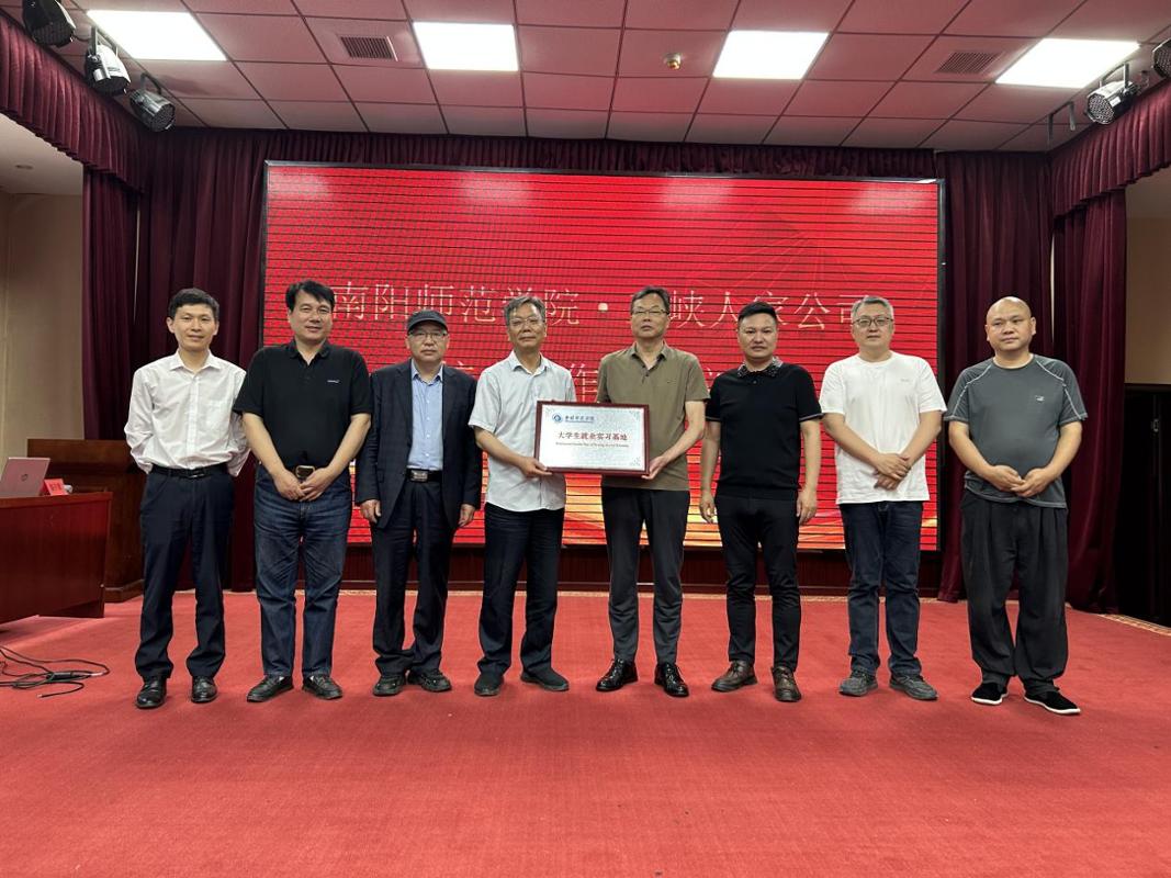 刘守勇向企业授予“天游ty8线路1线路2检测中心就业实习基地”牌匾。