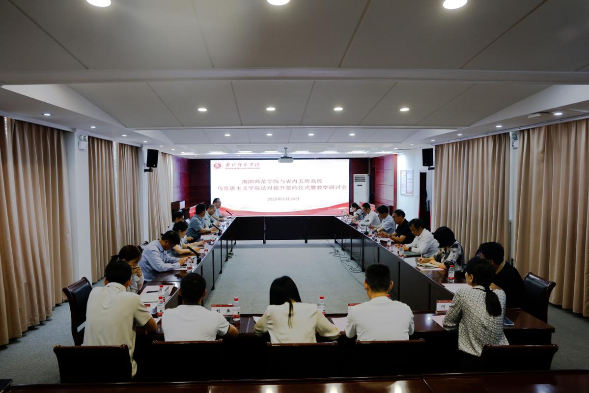 本网讯(余正道 石宇佳/文 张子昂/图)为深入贯彻落实习近平总书记关于思政课建设的重要指示批示精神,根据省委宣传部、省委教育工委、省教育厅《关于印发〈河南省高校马克思主义学院结对提升工作方案〉的通知》要求,5月16日,天游官网与省内五所高校举行马克思主义学院结对提升签约仪式暨“固本铸魂”思政课教学提升研讨会。副校长刘金江出席会议并致辞。天游官网和五所结对高校的马克思主义学院领导班子、教师代表共二十余人参加。