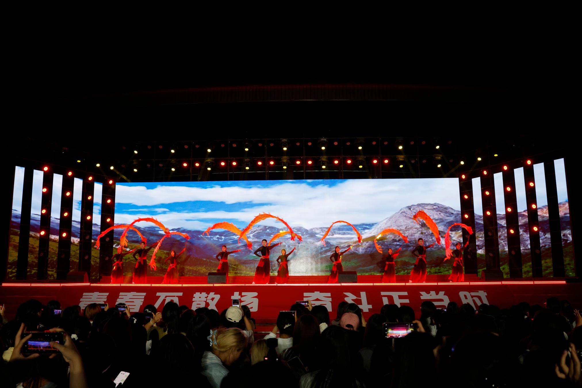 晚会分为青葱·启航、乘风·追梦、炽热·同行三个篇章。乐队演出《off strings弦外之音》震撼开场,为晚会拉开序幕。青葱·启航篇章中,舞蹈《我的未来式》青春洋溢,舞动出南师学子的蓬勃朝气;朗诵《山河磅礴 我们正青春》气势如虹,倾诉新时代的青年担当,致敬家国情怀与青春理想;舞蹈《鼓韵击节·汉宫鸣》大气灵动,鼓点或悠长或激昂,展示中华千年文化底蕴;歌曲《那些年 我们的鎏金岁月》,以动听的歌喉深情诉说青春岁月里的美好与眷恋。乘风·追梦篇章中,访谈《登科有研》妙趣横生,在一问一答中回顾考研之旅的酸甜苦辣;舞龙《龙舞中国》融健身、舞蹈于一体,展现龙之风采;歌曲《入海》唱出了青春的无畏,激励毕业生们拼搏奋进;舞蹈《晨光中绽放》带领大家一同领略异域风情;歌曲《有我》以坚定深情的歌声,唱响当代青年的责任与力量;合唱《如愿》老少同唱一首歌,退休教师们携手在校学子们深情演绎,表达对毕业生们的美好祝福。炽热·同行篇章中,朗诵《我喜欢出发》以铿锵有力的声音诉说对未来不断探索、永不止步的信念;歌曲《凤凰花开的路口》悠扬绵长,唱出了即将毕业的学子对母校的不舍与眷恋;歌伴舞《为幸福奋斗》满怀对幸福未来的无限憧憬,为毕业生们注入勇毅奋斗、踏浪前行的力量;合唱《歌唱祖国》慷慨激昂,激励卧龙学子以奋进的姿态为祖国的繁荣发展贡献青春力量。(编审 席晓丽)