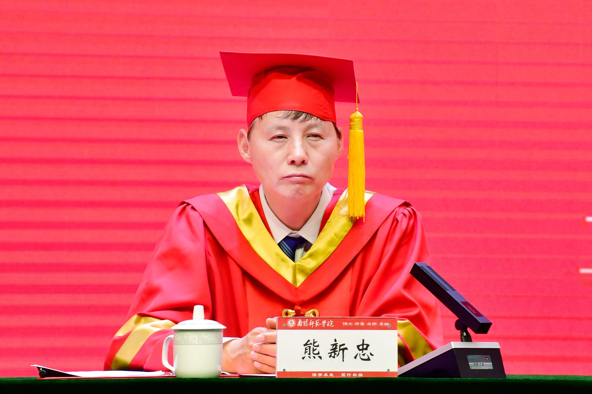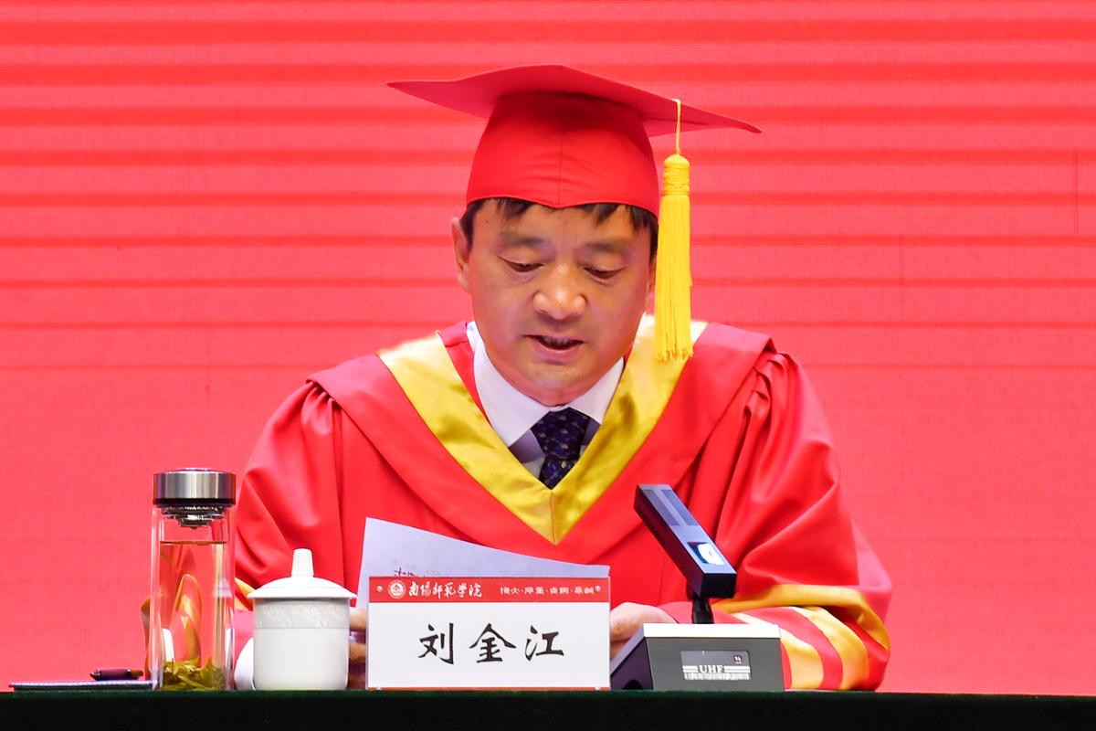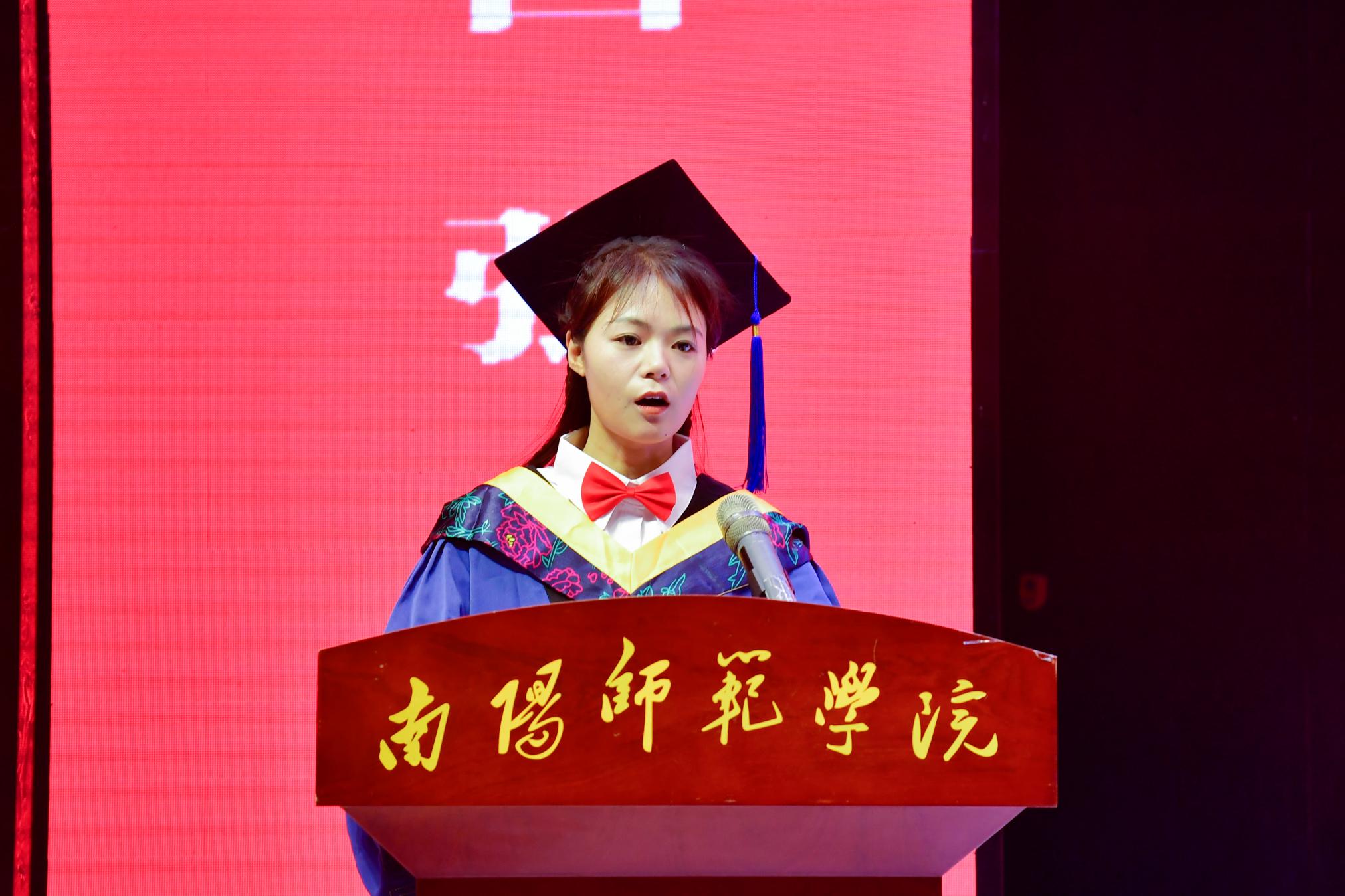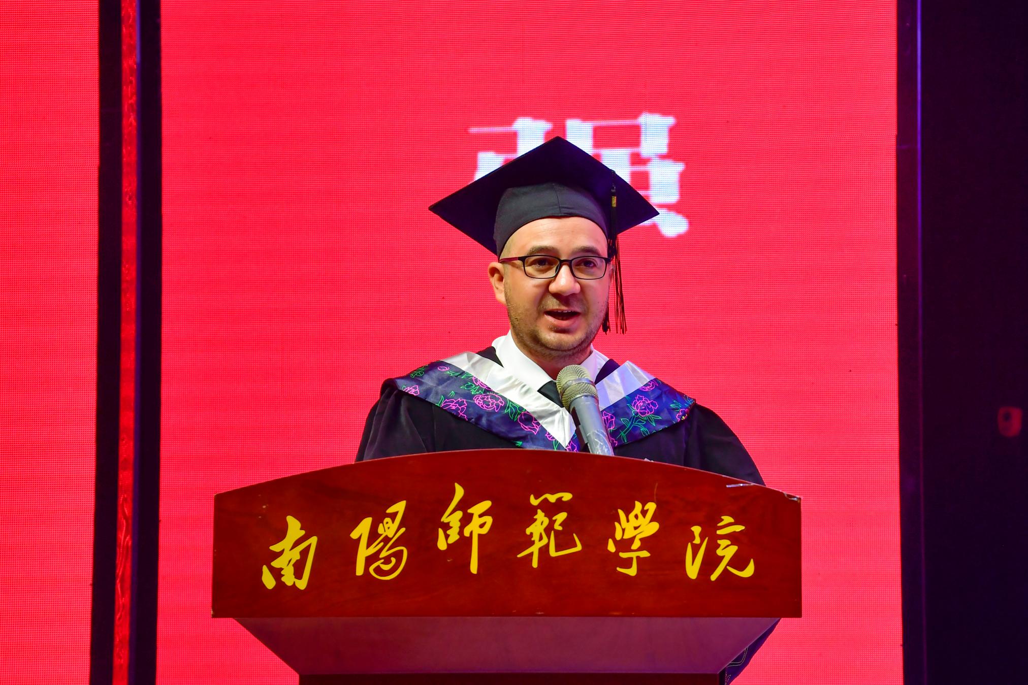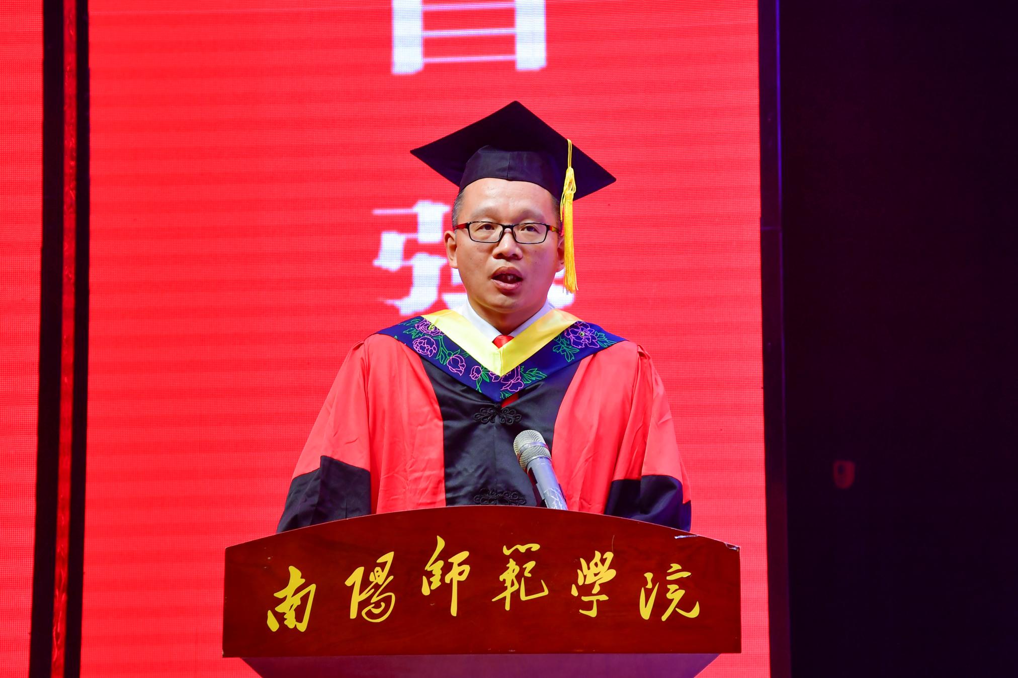教师代表、物理与电子工程学院院长朱永胜发言,鼓励毕业生带着母校的温暖迎接未来的挑战。