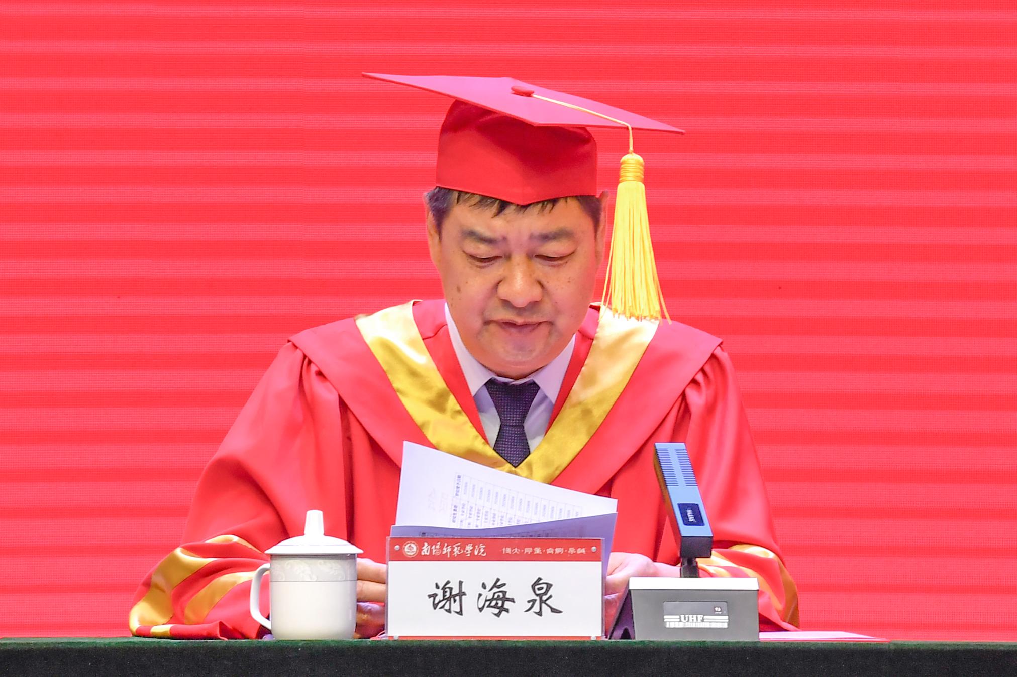 7副校长谢海泉宣读《天游ty8线路1线路2检测中心学位评定委员会关于授予2025届朱兴燕等87名研究生硕士学位的决定》