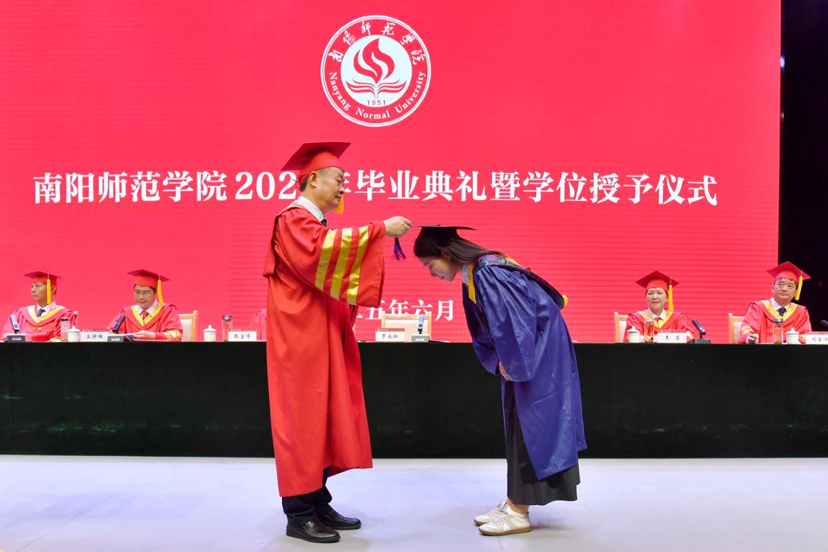 3校长罗永松为2025届毕业生代表颁发学位证书并拨正流苏