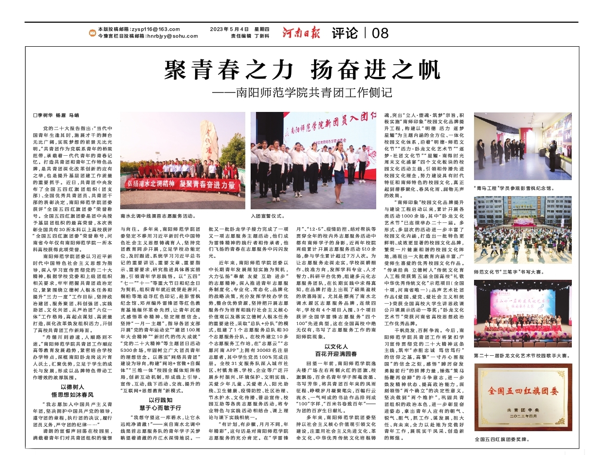 2023年5月4日,《河南日报》刊发《聚青春之力 扬奋进之帆——天游ty8线路1线路2检测中心共青团工作侧记》,现全文转载如下:
